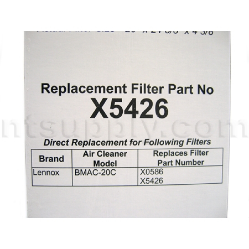 Lennox Model X5426 MERV 16 Replacement Filter - 20X25X5 - Fits BMAC-20C air cleaner cabinet