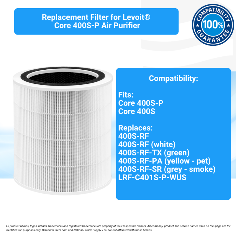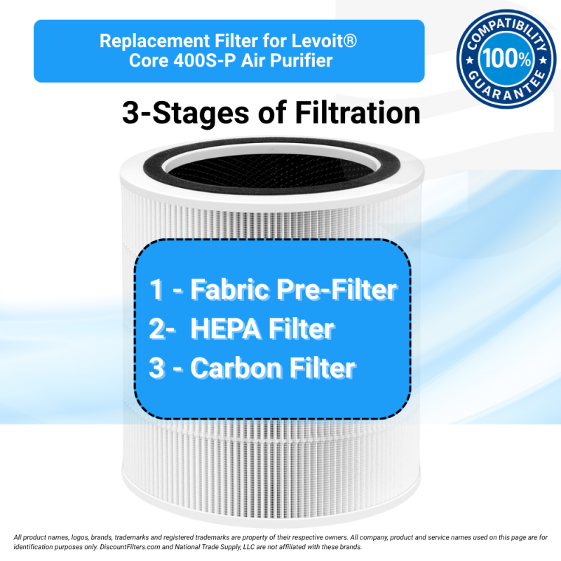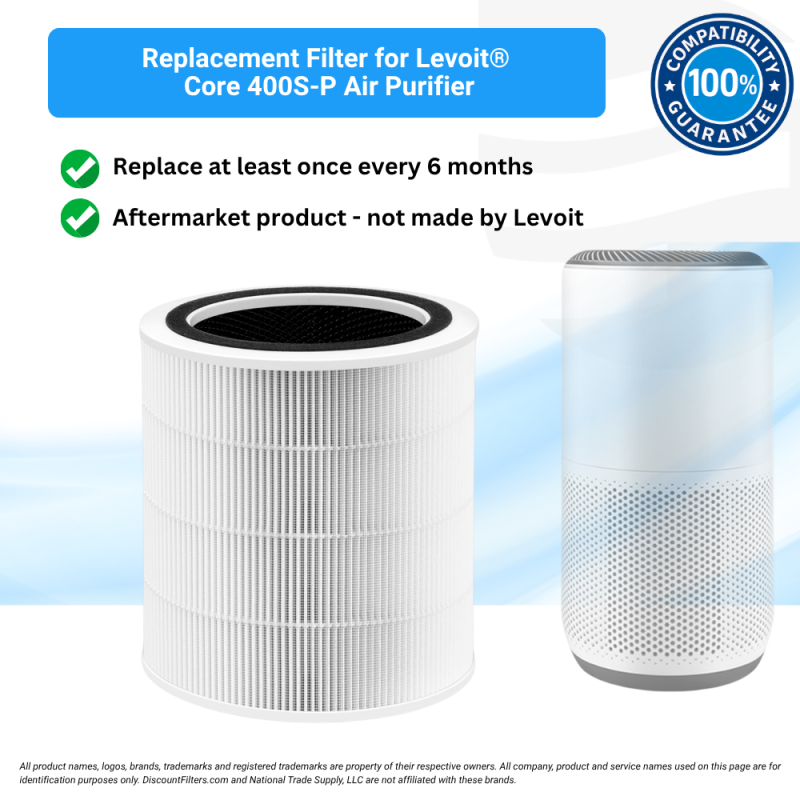 Levoit® is a registered trademark of Yoowo Co., Limited. National Trade Supply, LLC, DiscountFilters.com and AirX are not affiliated with Yoowo Co., Limited. This is not a Levoit® OEM product and is not covered under any Levoit® manufacturer's warranty. Any use of the Levoit® brand names or model designations for this product are made solely for purposes of demonstrating compatibility