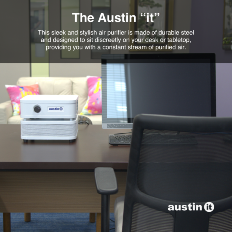 "it" is portable. "it" is powerful. "it" is proven. "it" is the Austin "it"! The Austin "it" personal air purifier effectively removes airborne pollutants, allergens, and particles from your personal space, providing you with cleaner, fresher air to breathe but improved air quality isn't the only benefit.