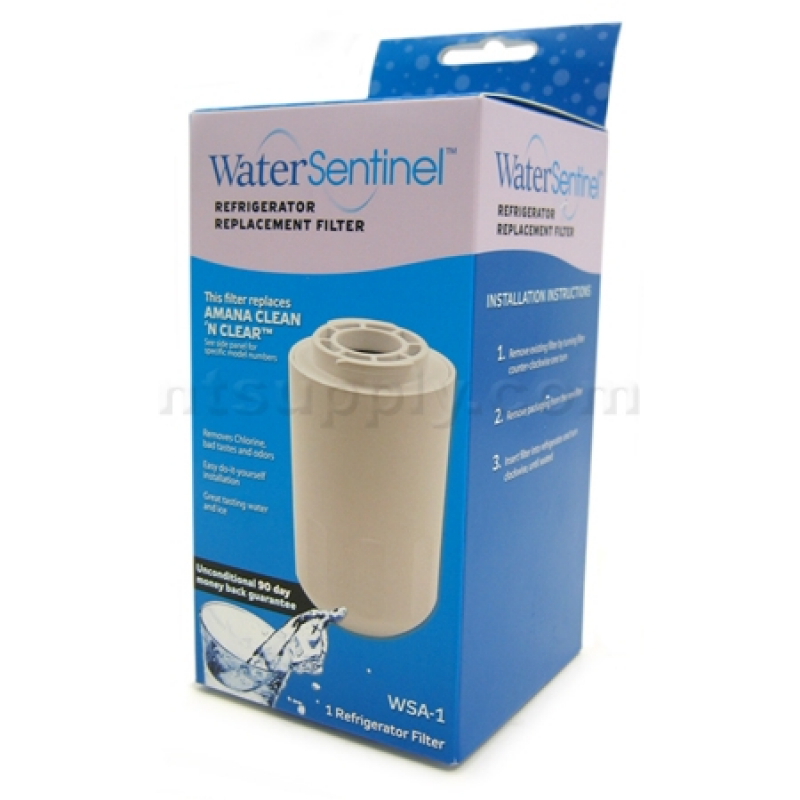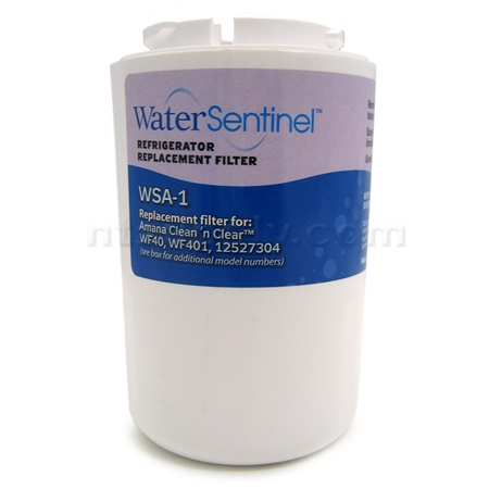The aftermarket WaterSentinel WSA-1 Filter is used in refrigerators by Amana, Kenmore and others. It is designed to replace the original Amana Clean 'n Clear (WF40 / 12527304) . The WSA-1 filter creates better tasting water for drinking and making beverages as well as clean, clearer, healthy ice.