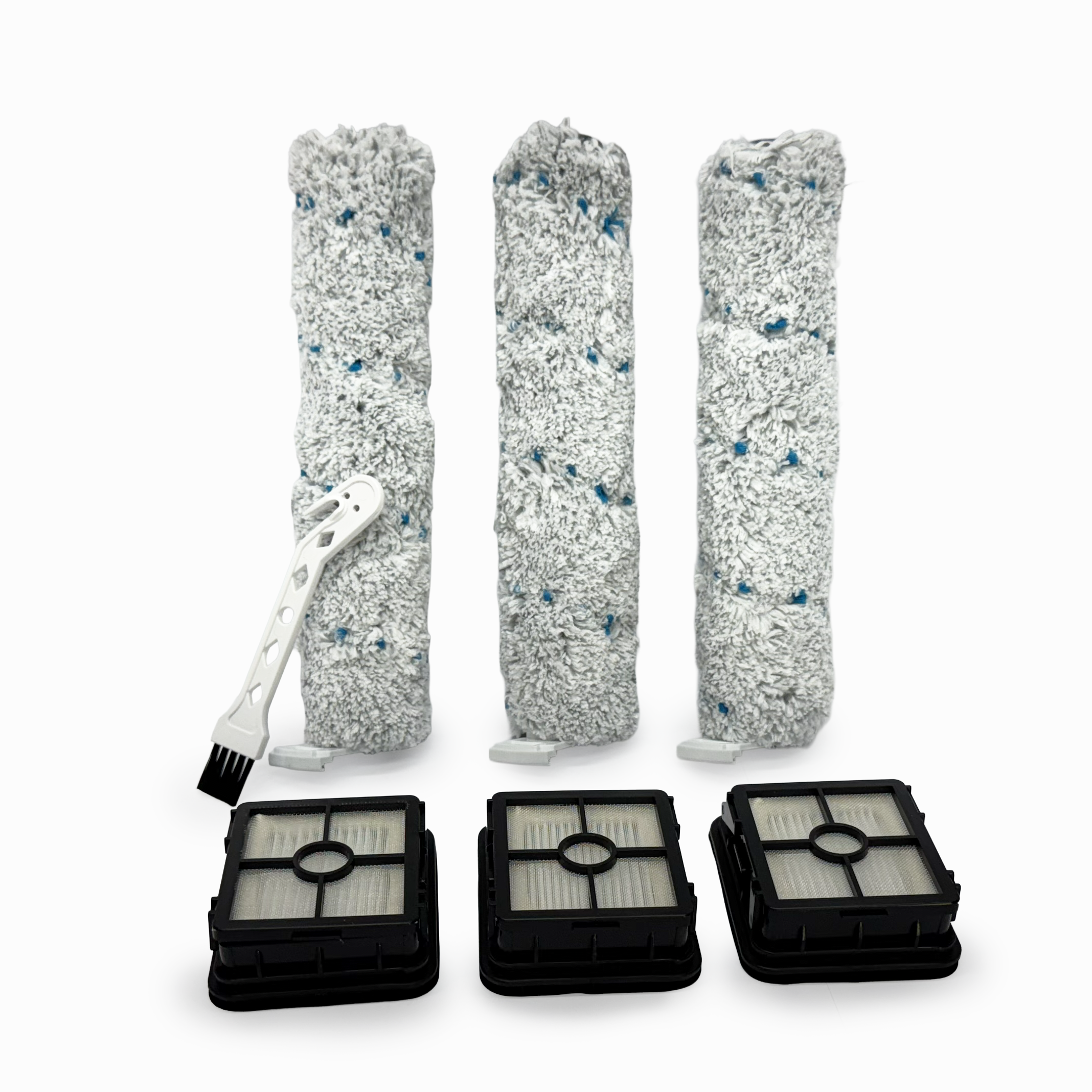 - Each kit contains 3 roller brushes and 3 HEPA filters