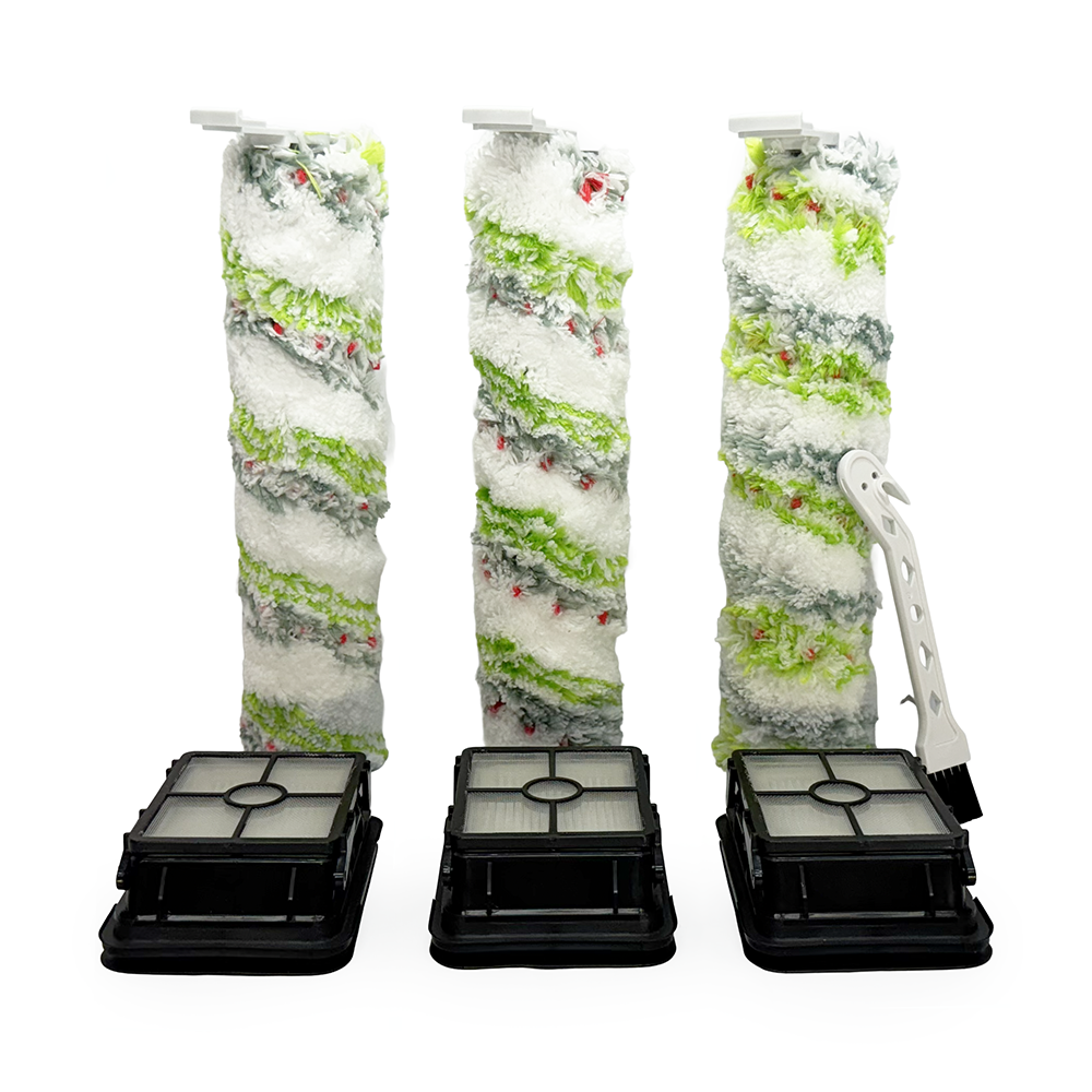 - Each kit contains 3 roller brushes and 3 HEPA filters